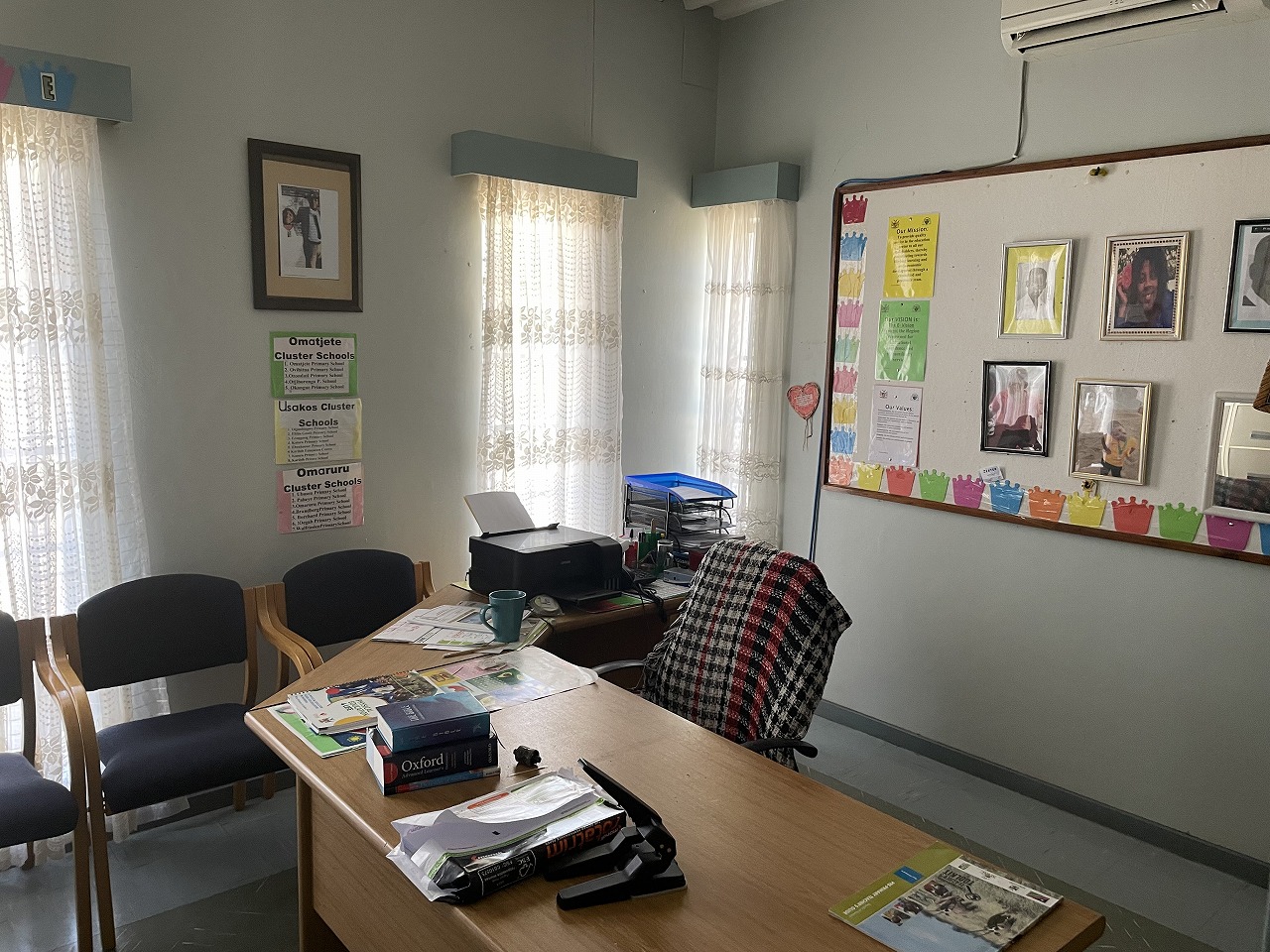 ナミビア西部の町にある地域教育事務所で、同僚の教育指導主事と協力して管轄する学校を巡回し、教員に対して指導方法等の助言を行います。また、教材作成、授業研究、教員向けワークショップ開催等の支援も行います。